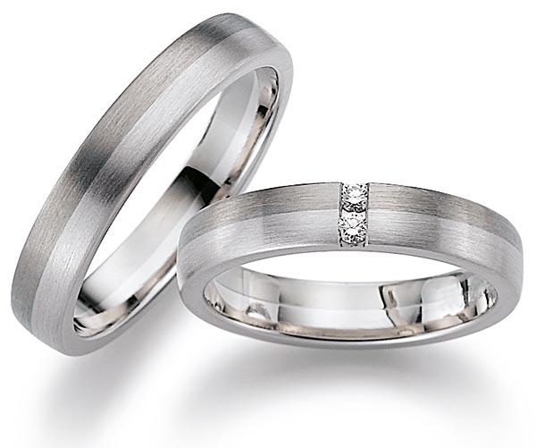 Edle Trauringe in 950 Platin / 750 Weissgold seidenmatt. 2 Brillanten zusammen 0,05 ct. TW/VSI. Breite 4,00 mm.