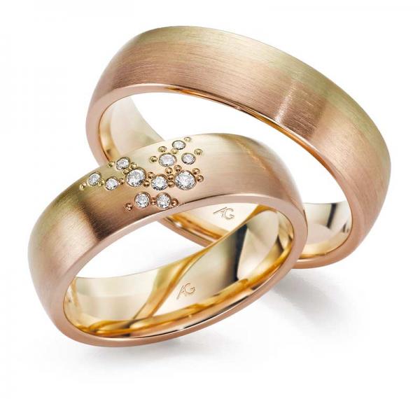 Edle Trauringe in 585 Rose-Rot-Gelbgold seidenmatt