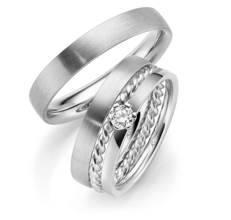 August Gerstner Trauringe Weissgold 29779/2 + 31191/1.7 + 31220/3 + 31220/4