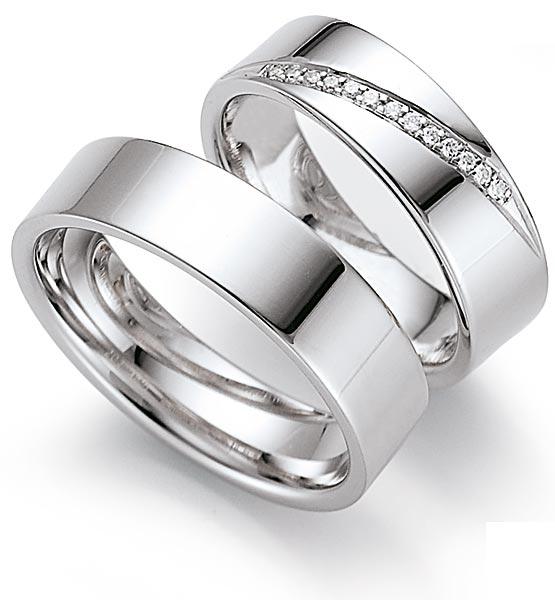 Edle Trauringe in 585 Weissgold poliert. 13 Brillanten 0,065 ct TW/SI. Breite 6,0 mm.