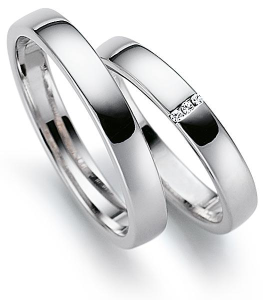 Edle Trauringe in 585 Weissgold poliert . 3 Brillanten 0,015 ct TW/SI. Breite 3,50 mm.