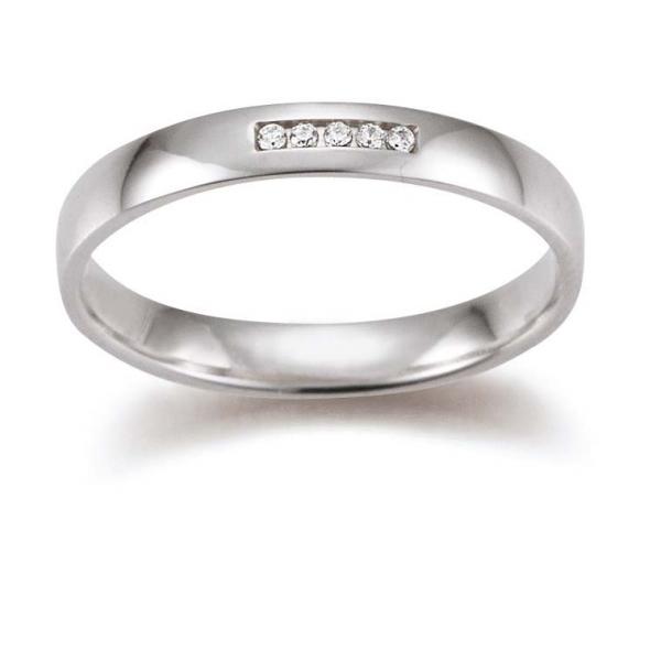Brillantring von August Gerstner. Ideal als klassischer Verlobungsring bzw. Antragsring geeignet. Schlicht und elegant. 585er Weißgold mit 5 Brillanten zusammen 0,025 ct TW-SI. Breite 3,00 mm.