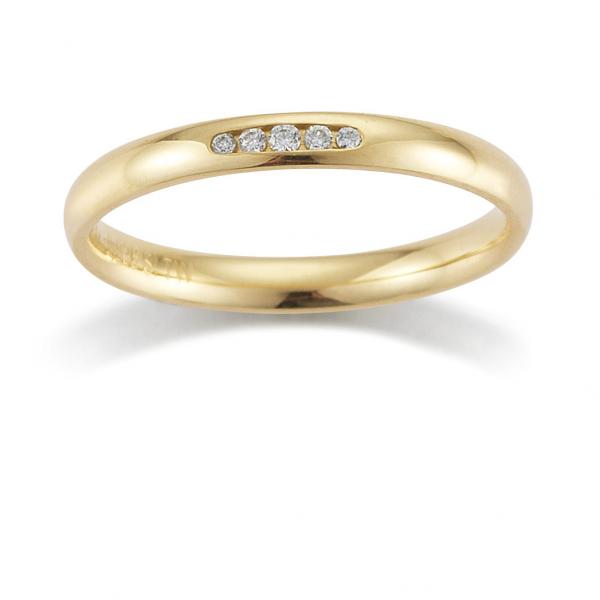 Brillantring von August Gerstner. Ideal als klassischer Verlobungsring bzw. Antragsring geeignet. Schlicht und elegant. 585er Gelbgold mit 5 Brillanten zusammen 0,036 ct TW-SI. Breite 2,50 mm.