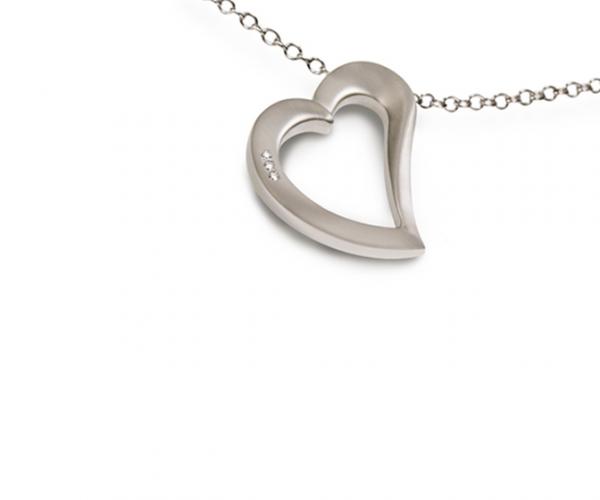 Liebevoller Anhänger Herz aus Titan teilpoliert. 3 Brillanten 0,015 ct. Passend zu Ihrer Halskette! 23x19x4 mm. (ohne abgebildete Kette).