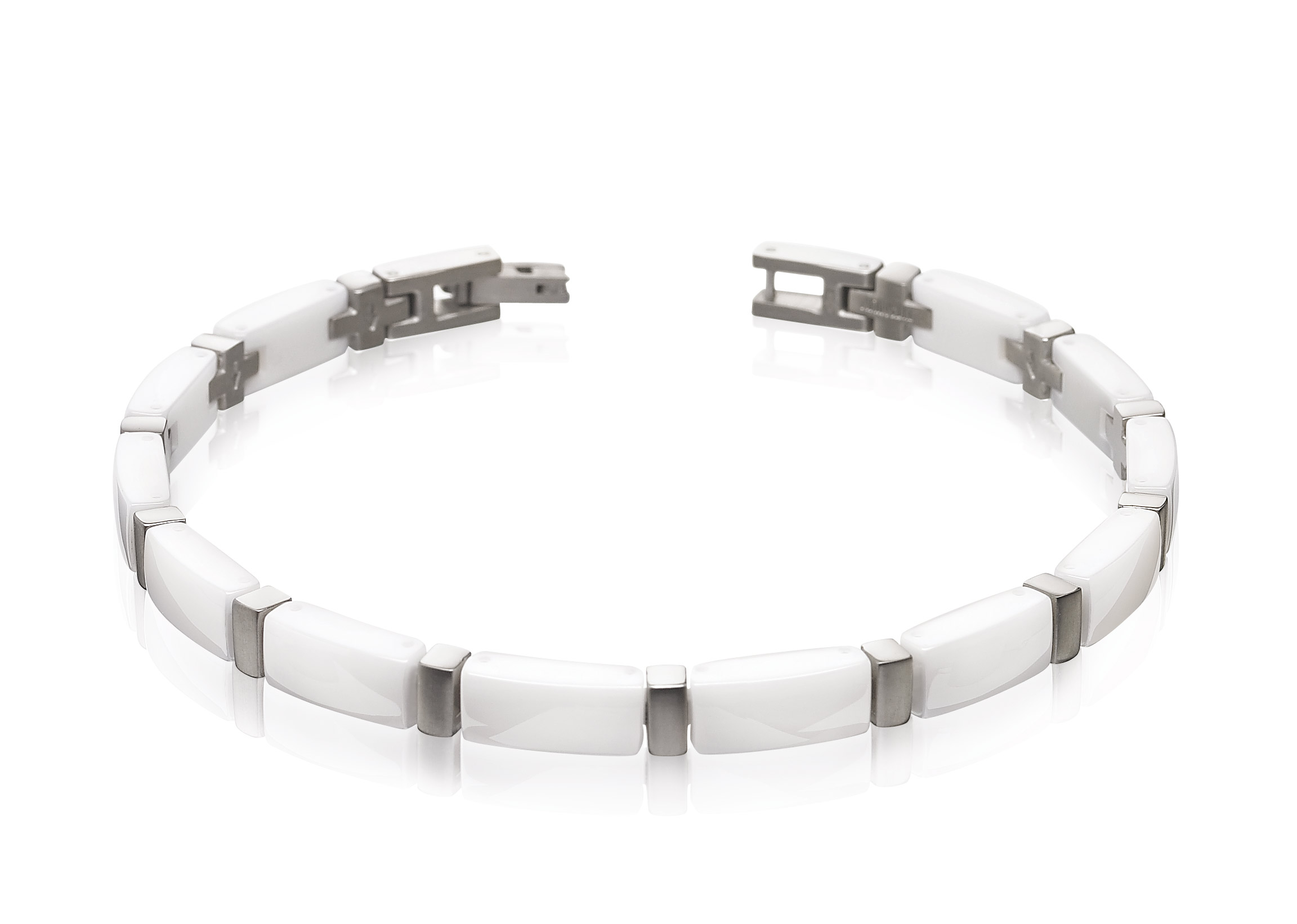 Hell , schön und edel präsentiert sich dieses Titanarmband 0371-03 von Boccia mit satinierter Oberfläche und polierter weisser Keramik . Breite : 6.0 mm