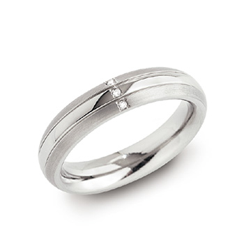Edler Titanring in polierter und matter Oberfläche . Die Brillanten sind jeweils durch Fugen getrennt . 3 Brillanten in weisser Farbe und kleinen Einschlüssen .Breite des Ringes 5,0 mm.