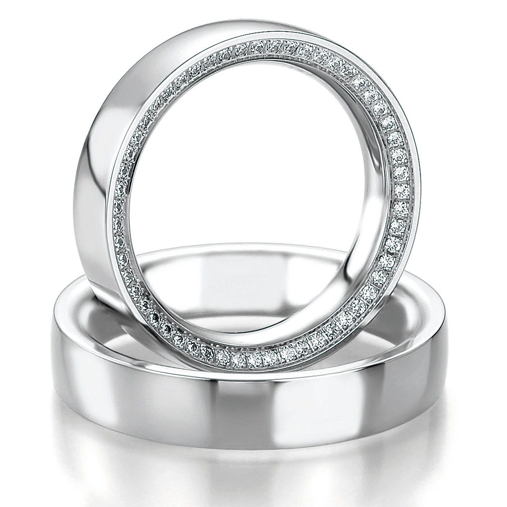 EKLUSIVE Memoire Trauringe der Marke Breuning, Serie DESIGN. Wundervolle Eheringe in 3475 Weissgold poliert. Mehrere Brillanten zusammen 0,303 ct. W/SI. Breite 5,00 mm.