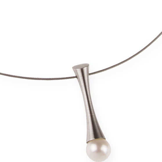 Collier K77. Edelstahl teilsatiniert. Süsswasser - Perle ca. Ø 7 mm. Anhänger Länge ca. 30 mm. Nickelfrei und Made in Germany. Bajonettverschluss Edelstahl.
