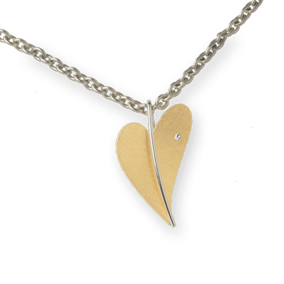 Anhänger AN274. Edelstahl Gelbgold vergoldet. Herzgröße 14x21 mm. 1 Brillant 0,016 ct. TW/SI. Hautfreundlich und nickelfrei. Made in Germany.
