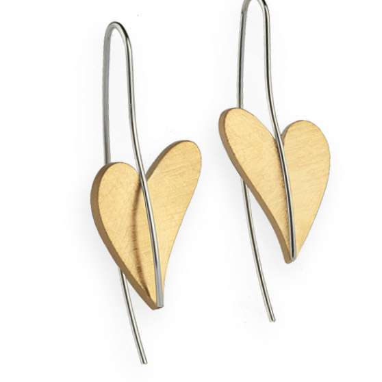Herz Ohrhänger aus Edelstahl vergoldet quermatt und poliert. Größe 14x21 mm. Hautfreundlich un nickelfrei. Made in Germany.