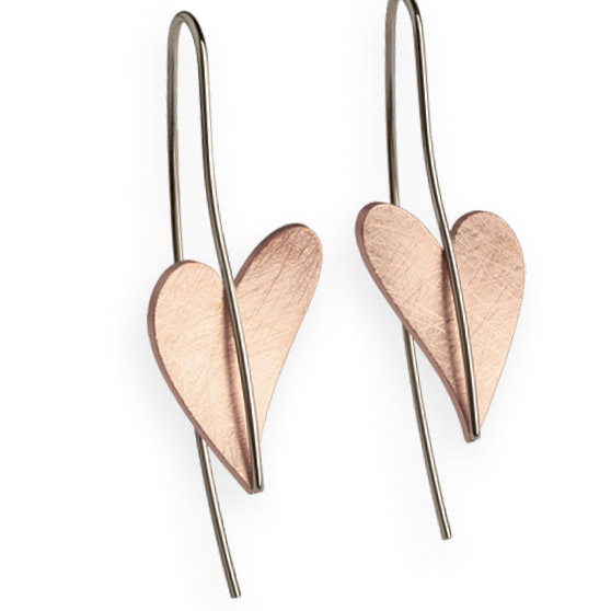Herz Ohrhänger aus Edelstahl Rotgold vergoldet quermatt und poliert. Größe 14x21 mm. Hautfreundlich un nickelfrei. Made in Germany.