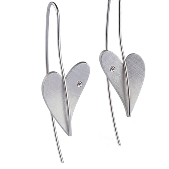 Herz Ohrhänger aus Edelstahl quermatt und poliert. Größe 14x21 mm. 2 Brillanten 0,016 ct. TW/SI. Hautfreundlich un nickelfrei. Made in Germany.