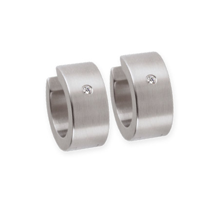 Creolen aus Edelstahl. Breite 7 mm. 2 Brillanten 0,016 ct. TW/SI. Hautfreundlich und nickelfrei. Made in Germany.