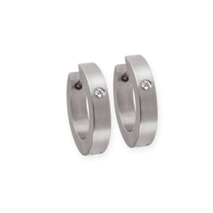 Creolen aus Edelstahl. 2 Brillanten 0,016 ct. TW/SI. Breite 3 mm. Hautfreundlich und nickelfrei. Made in Germany.