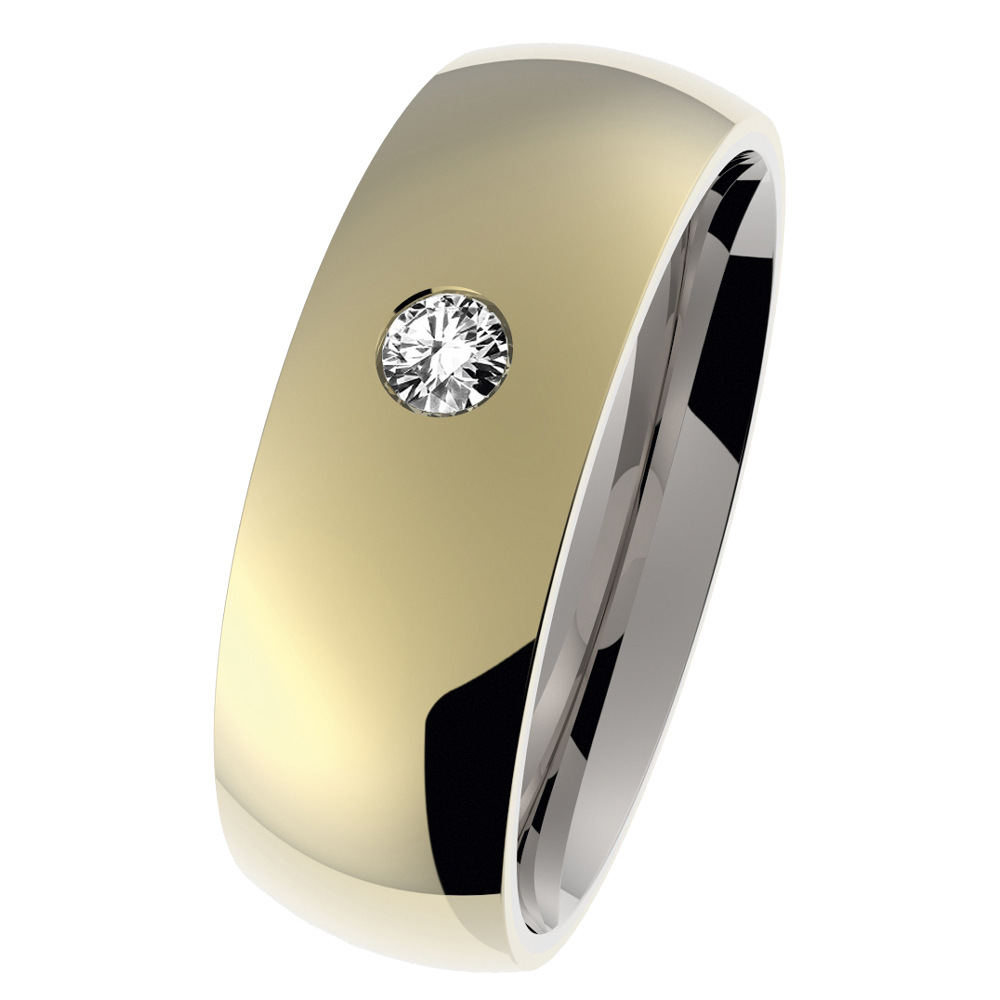 Edelstahl-Ringschiene mit 585er Gelbgold-Auflage poliert