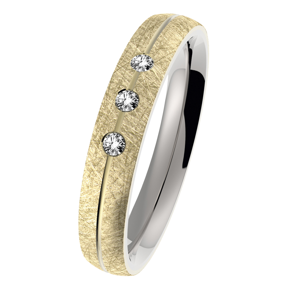 Edelstahl-Ringschiene mit 585er Gelbgold-Auflage gekratzt mit seitlicher Nut