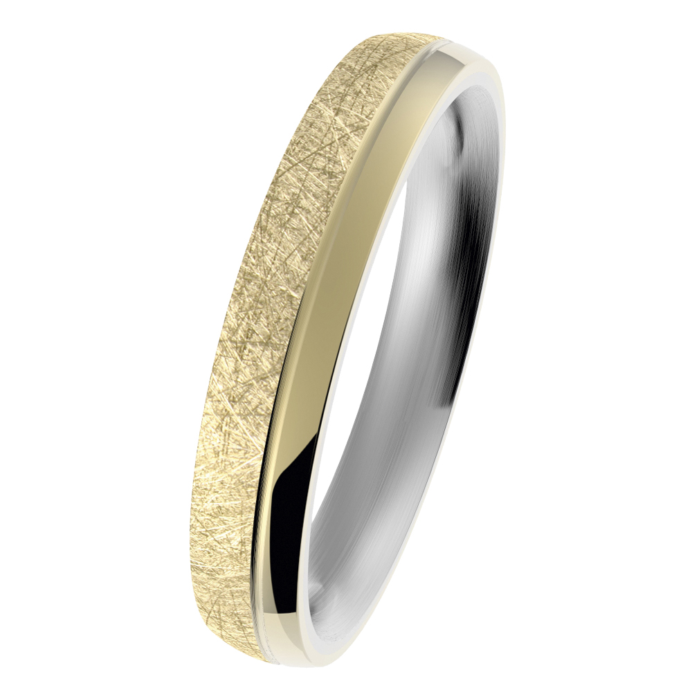 Edelstahl-Ringschiene mit 585er Gelbgold-Auflage gekratzt/poliert mit seitlicher Nut