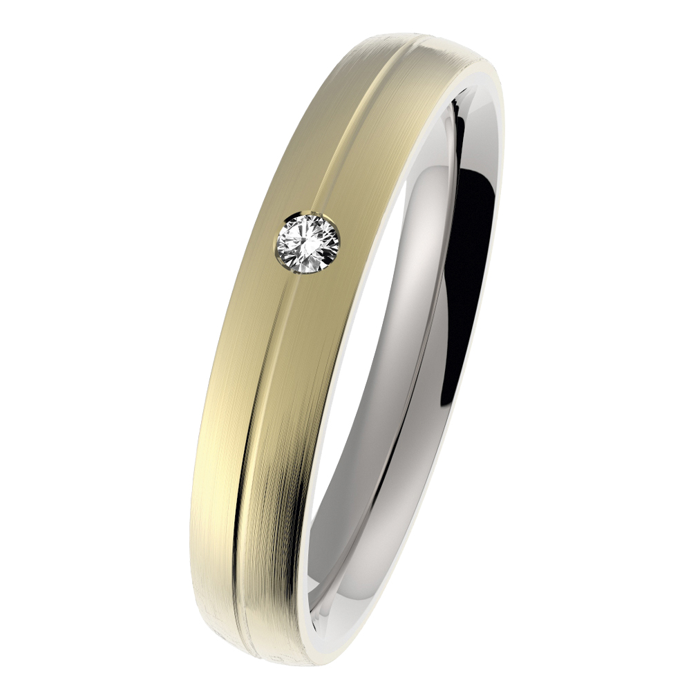 Edelstahl-Ringschiene mit 585er Gelbgold-Auflage mattiert mit mittiger Nut
