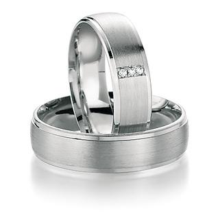 Manufaktur Fischer - Deutschland. Edle und wunderschöne Trauringe in 950 Palladium seidenmatt und poliert aus der Pforzheimer Manufaktur. Eine Firma mit Tradition und gutem Preis-Leistungsverhältnis. 3 Brillanten zusammen 0,021 ct. TW/SI. Breite 6,00 mm.