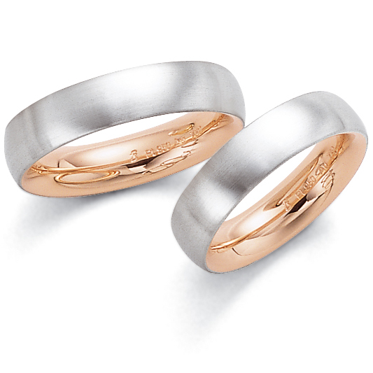 Manufaktur Fischer - Deutschland. Edle Trauringe in 950 Platin außen seidenmatt kombiniert mit 750 Rotgold innen poliert aus der Pforzheimer Manufaktur. Eine Firma mit Tradition und gutem Preis-Leistungsverhältnis. Breite 5,50 mm.