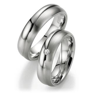 Manufaktur Fischer - Deutschland. Edle Trauringe in 585 Weißgold seidenmatt aus der Pforzheimer Manufaktur. Eine Firma mit Tradition und gutem Preis-Leistungsverhältnis. 1 Brillant 0,04ct TW/SI. Breite 6,00 mm.