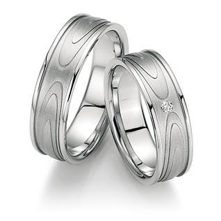 Manufaktur Fischer - Deutschland. Edle und wunderschöne Trauringe in 585 Weissgold seidenmatt und poliert aus der Pforzheimer Manufaktur. Eine Firma mit Tradition und gutem Preis-Leistungsverhältnis. 1 Brillant 0,02 ct. TW/SI. Breite 6,00 mm.