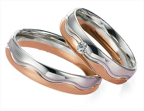 Firma Gettmann aus Deutschland in Pforzheim. Hochwertige Trauringkollektion, was zu Ihrer Hochzeit dazu beitragen kann. Edle Trauringe in 585 Graugold / Rotgold poliert. 1 Brillant 0,06 ct. TW/SI. Breite 5,00 mm.