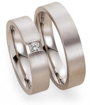 Unrhodiniertes Weßgold, welches farbtreu und grau ist. Firma Gettmann aus Deutschland in Pforzheim. Hochwertige Trauringkollektion, was zu Ihrer Hochzeit dazu beitragen kann. Edle Trauringe in 585 Graugold seidenmatt. 1 liebevoller Brillant 0,07 ct. TW/SI. Breite 5,00 mm.