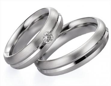 Unrhodiniertes Weßgold, welches farbtreu und grau ist. Firma Gettmann aus Deutschland in Pforzheim. Hochwertige Trauringkollektion, was zu Ihrer Hochzeit dazu beitragen kann. Edle Trauringe in 585 Graugold seidenmatt und poliert. 1 grosser Brillant 0,15 ct. TW/SI. Breite 6,00 mm.