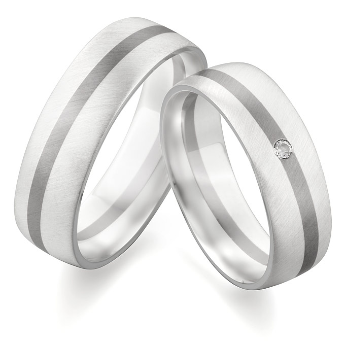 500 Palladium, 925 Silber, mit Brillant 0.02 Carat, W/SI, Breite 6.5 mm, Höhe 1.6 mm