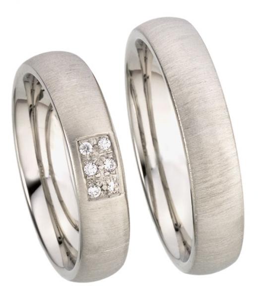 Manufaktur Kühnel - Deutschland. LIEBE ist Kühnel. Edle Trauringe in 585 Weißgold strichmatt. Trauringe mit gutem Tragekomfort und attraktiven Preis. 6 Brillanten zusammen 0,06 ct. W/SI. Breite 5,00 mm.