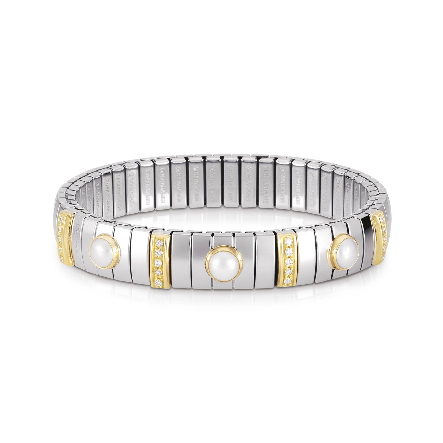 Armbänder N.Y. MEDIUM Edelstahl, 18K-Gold, Cub. Zirc. und 3 Perlen Weisse Perle