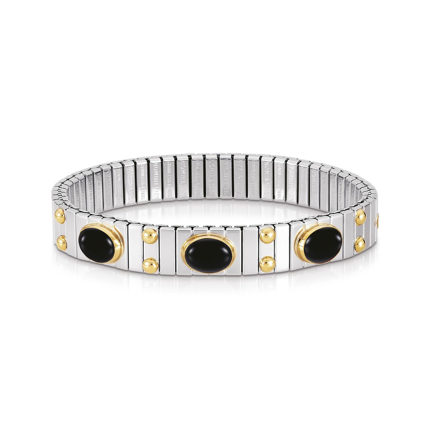 Armbänder XTE MEDIUM Edelstahl und 18K-Gold mit 3 Edelsteinen ACHAT SCHWARZ