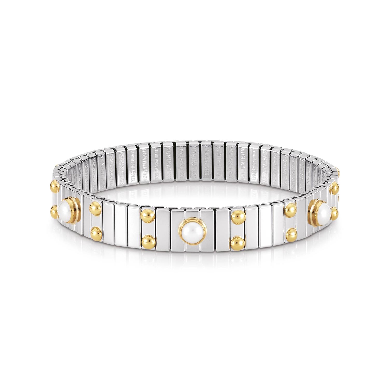 Armbänder XTE MEDIUM Edelstahl und 18K-Gold mit 6 Edelsteinen Weisse Perle