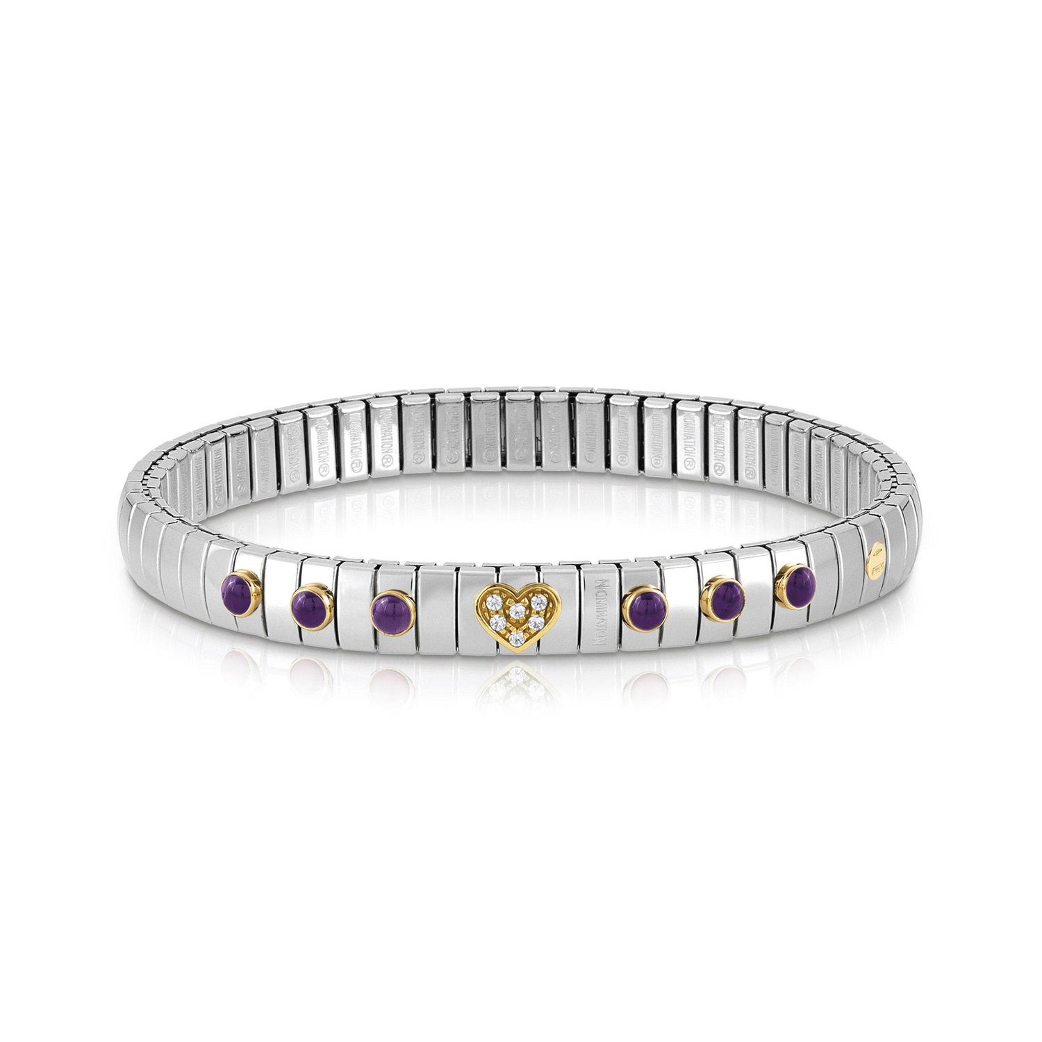Armband XTE in Edelstahl, HERZ in 750er Gold, Cubic Zirkonia und mit 6 Edelsteinen AMETHYST