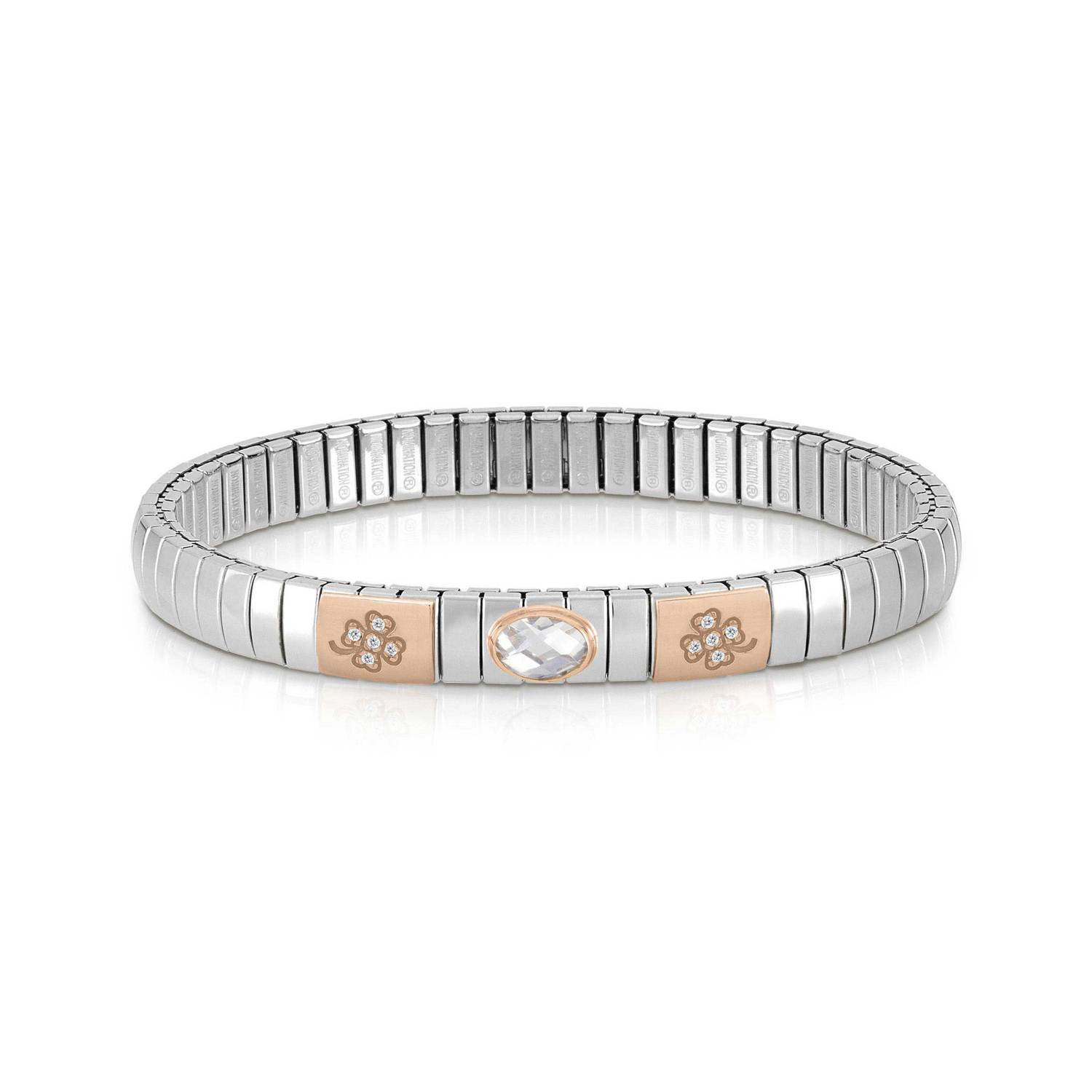 Armband XTE aus Edelstahl, 375er Gold, Cubic Z. und Zikonia WEISS KLEEBLATT