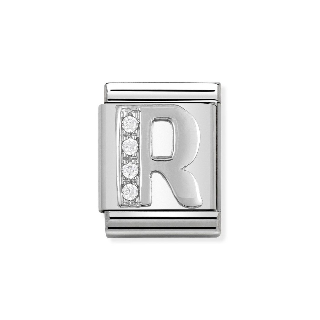 BUCHSTABEN Zusammensetzbar Big Stahl, Silber 925 und kubisch Zirkon R