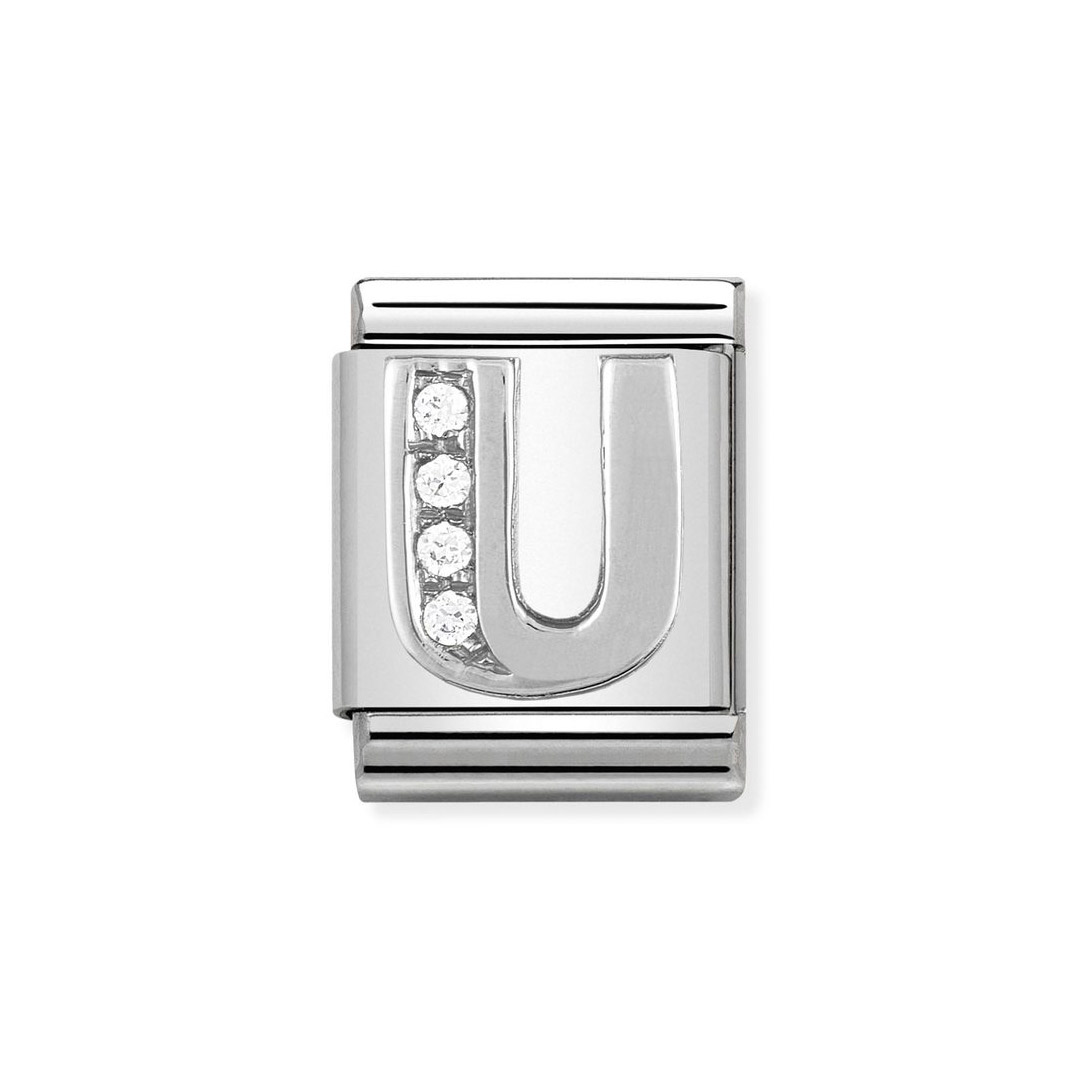 BUCHSTABEN Zusammensetzbar Big Stahl, Silber 925 und kubisch Zirkon U