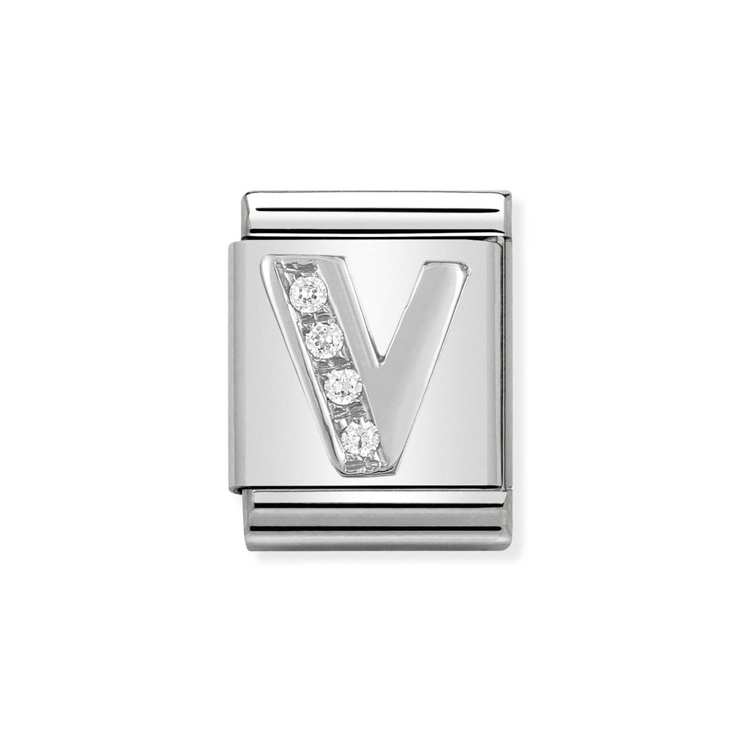 BUCHSTABEN Zusammensetzbar Big Stahl, Silber 925 und kubisch Zirkon V