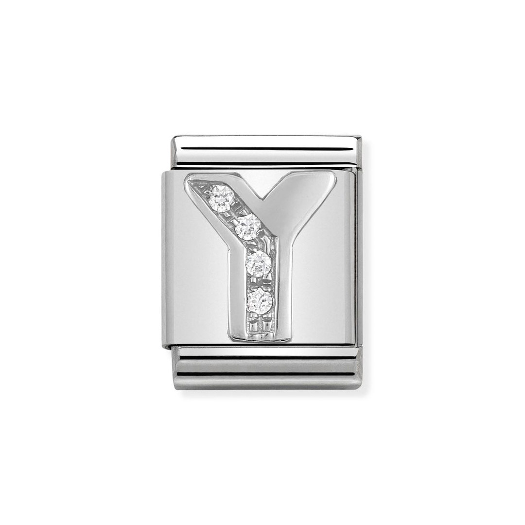 BUCHSTABEN Zusammensetzbar Big Stahl, Silber 925 und kubisch Zirkon Y