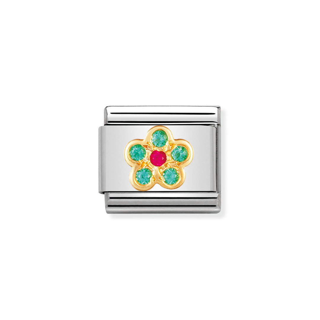 Comp. Classic NATURE Edelstahl, 18K-Gold und Cubic Zirc. Blume ohne Stiel GRÜN/ROT