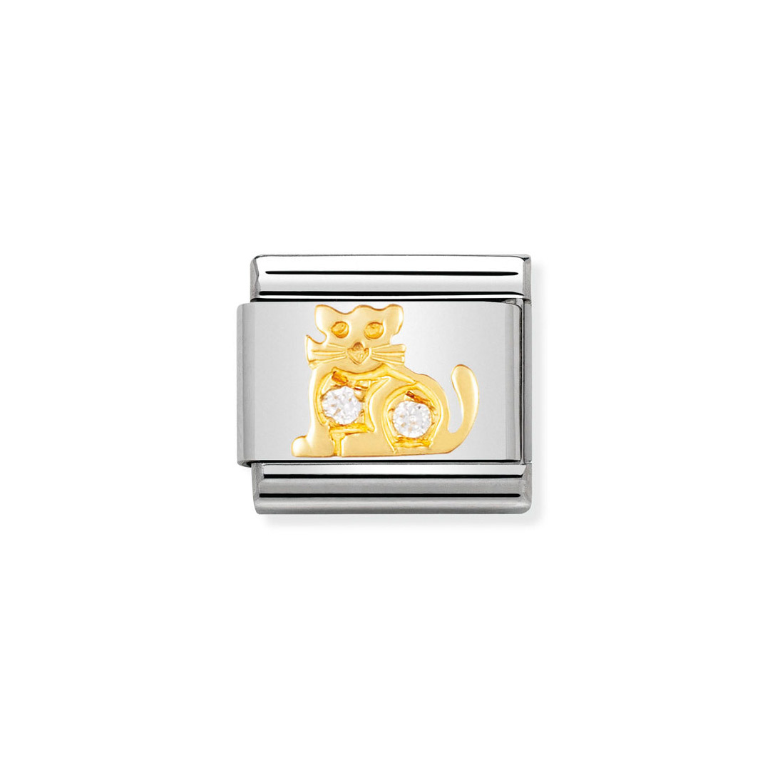 Comp. Classic TIERE - LAND Edelstahl, 18K-Gold und Cubic Zirc. Katze WEISS