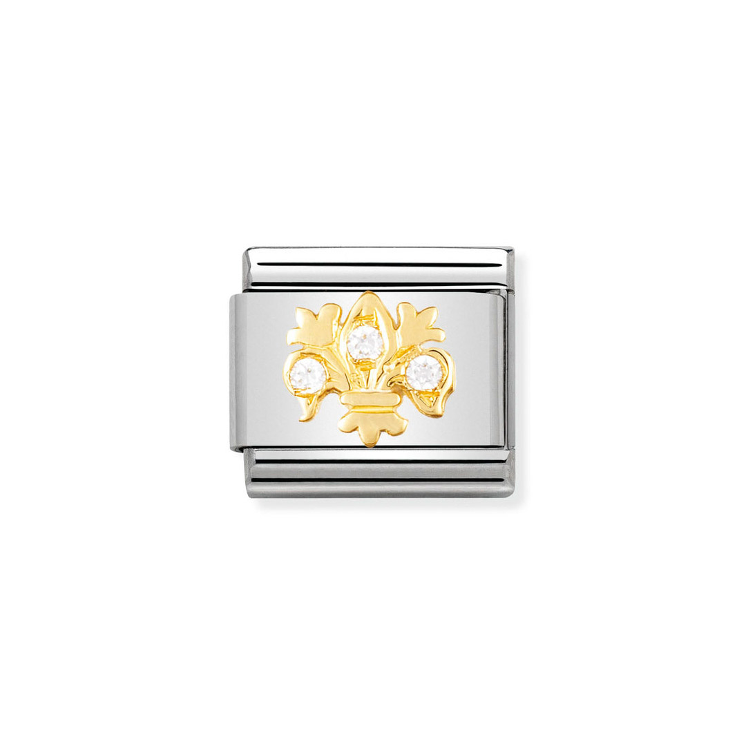 Comp. Classic DAILY LIFE Edelstahl, 18K-Gold und Cubic Zirc. Lilie WEISS