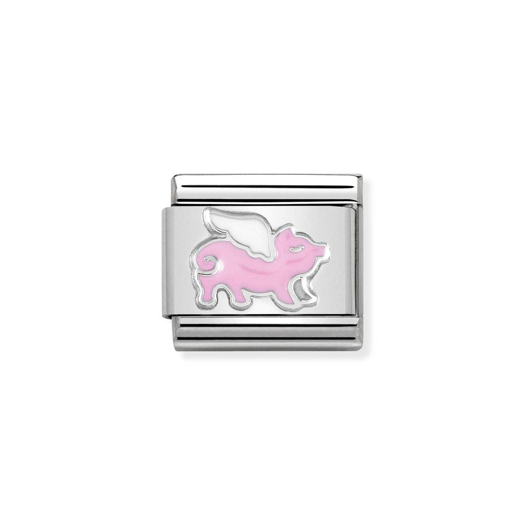 COMPOSABLE CLASSIC SYMBOLE aus Edelstahl, mit Emaille und 925er Silber verziert, Schwein mit Flügeln