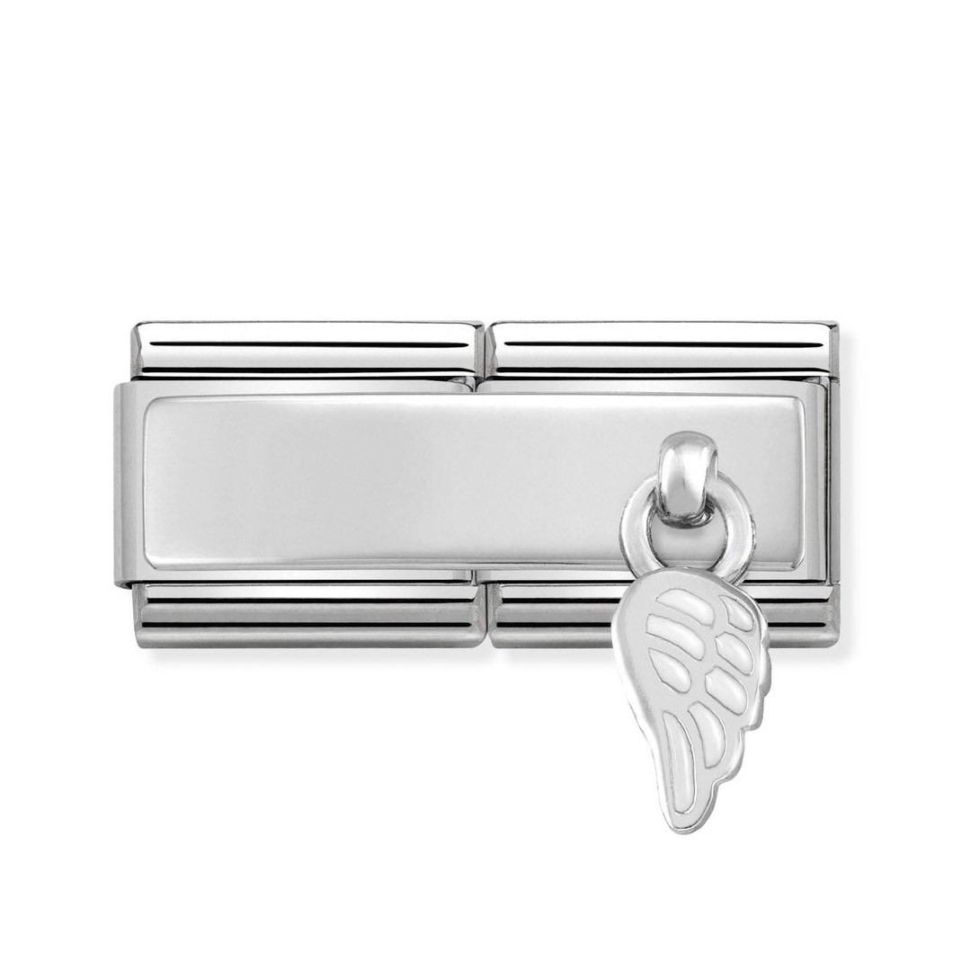 COMPOSABLE CLASSIC DOUBLE CHARMS aus Edelstahl, mit 925er Silber und Emaille verziert, weisser Flügel