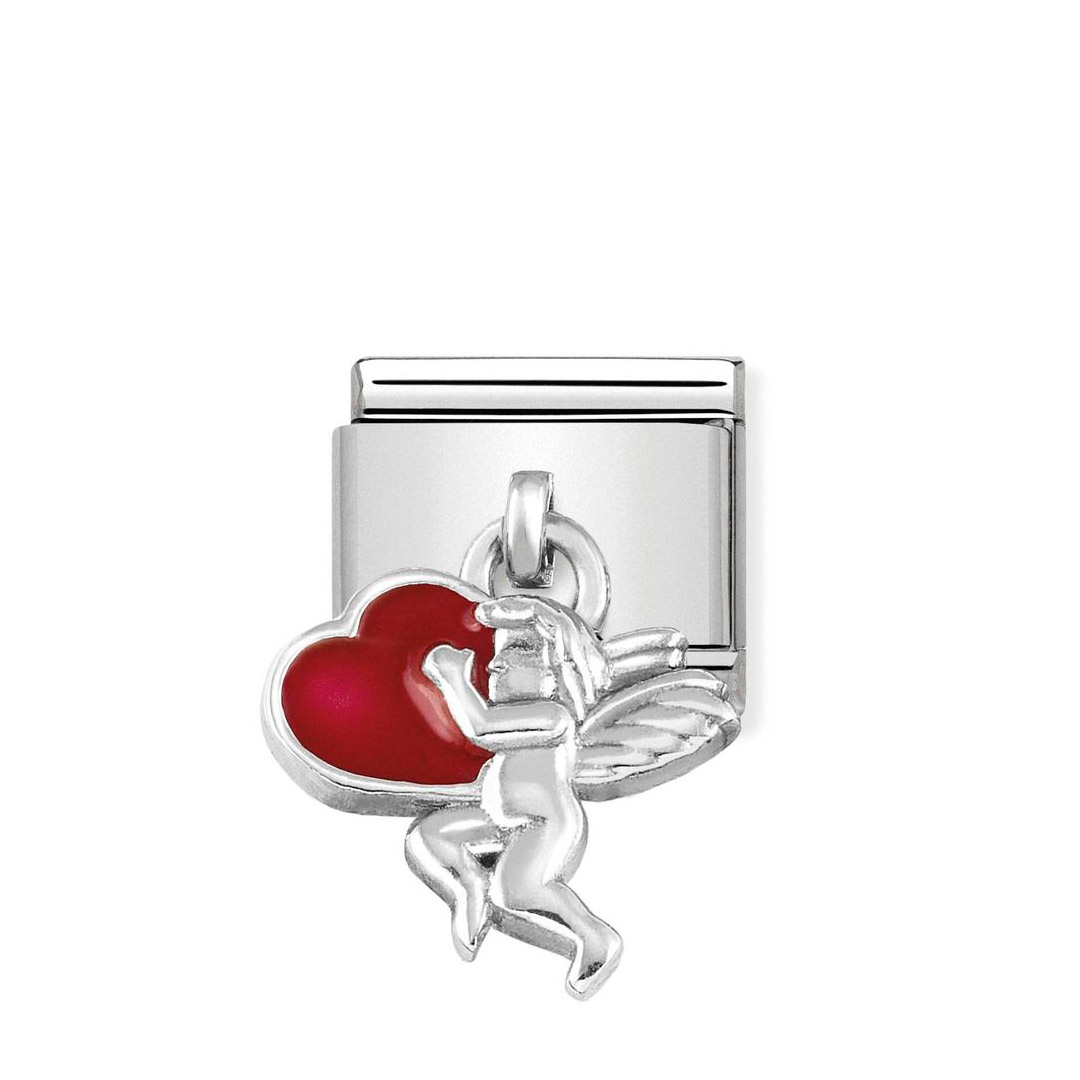 COMPOSABLE CLASSIC CHARMS aus Edelstahl, mit 925er Silber und Emaille verziert, Putte mit Herz