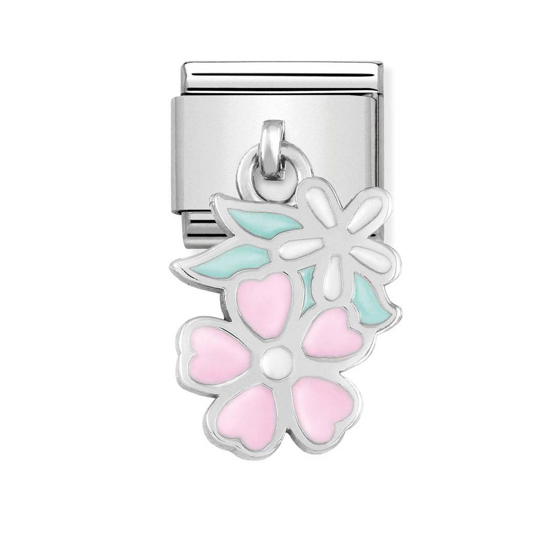 COMPOSABLE CLASSIC CHARMS aus Edelstahl, mit 925er Silber und Emaille verziert, Doppelte Blume
