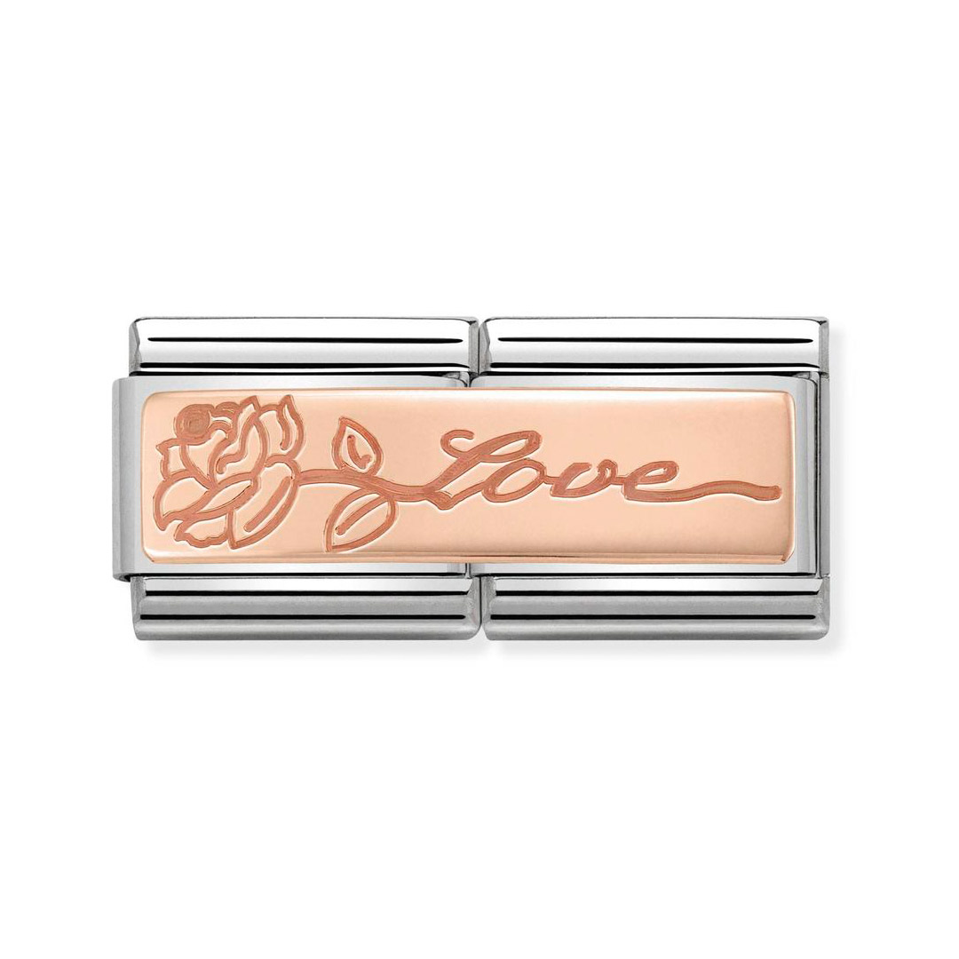 COMPOSABLE CLASSIC DOUBLE ENGRAVED aus Edelstahl, mit 9Kt Rosegold verziert, Love mit Blume