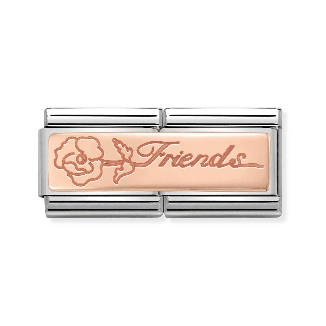 COMPOSABLE CLASSIC DOUBLE ENGRAVED aus Edelstahl, mit 9Kt Rosegold verziert, Friends mit Blume