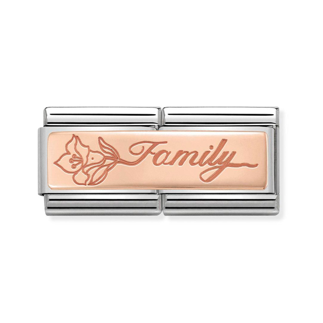 COMPOSABLE CLASSIC DOUBLE ENGRAVED aus Edelstahl, mit 9Kt Rosegold verziert, Family mit Blume